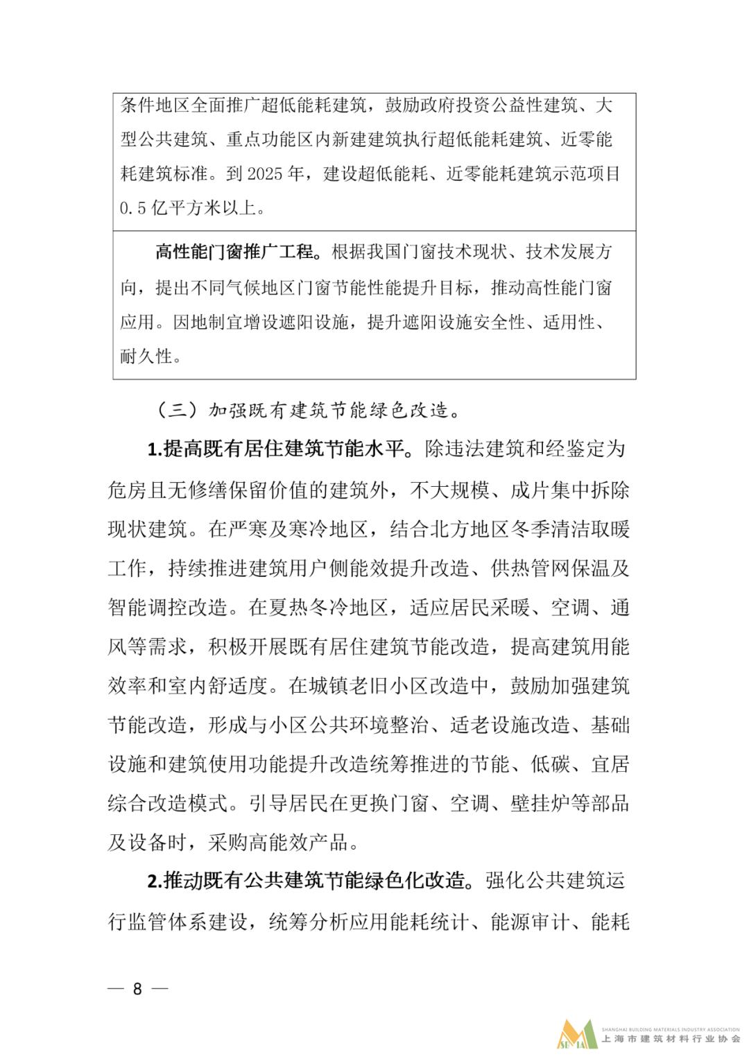 三、加強既有建筑節(jié)能綠色改造。提高既有居住建筑節(jié)能水平。在城鎮(zhèn)老舊小區(qū)改造中,鼓勵加強建筑節(jié)能改造,形成與小區(qū)公共環(huán)境整治、適老設施改造、基礎設施和建筑使用功能提升改造統(tǒng)籌推進的節(jié)能、低碳、宜居綜合改造模式。推動既有公共建筑節(jié)能綠色化改造。引導各地分類制定公共建筑用能(用電)限額指標,開展建筑能耗比對和能效評價,逐步實施公共建筑用能管理。持續(xù)推進公共建筑能效提升重點城市建設,加強用能系統(tǒng)和圍護結構改造。