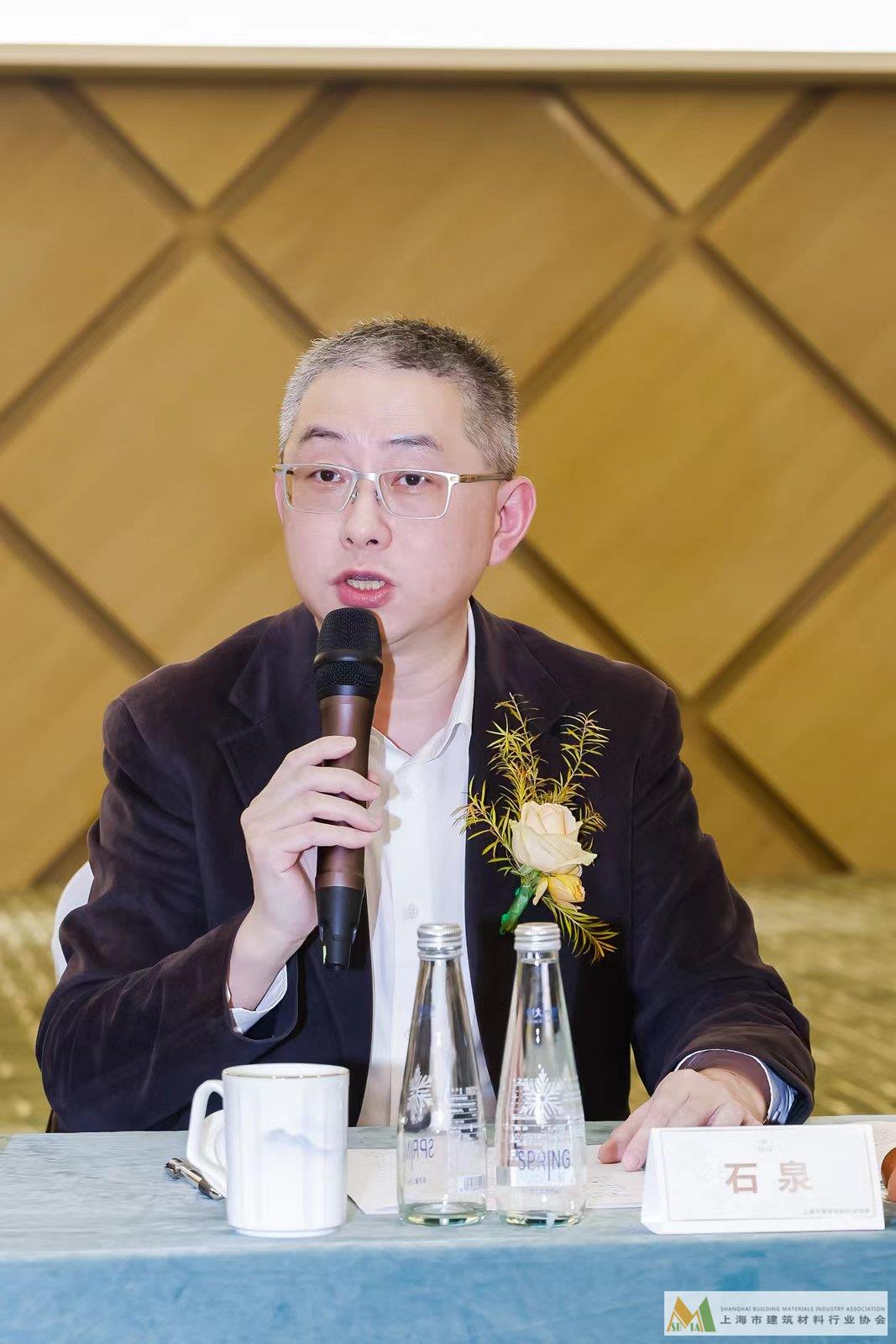 上海市建筑材料行業(yè)協(xié)會書記、秘書長石泉主持會議