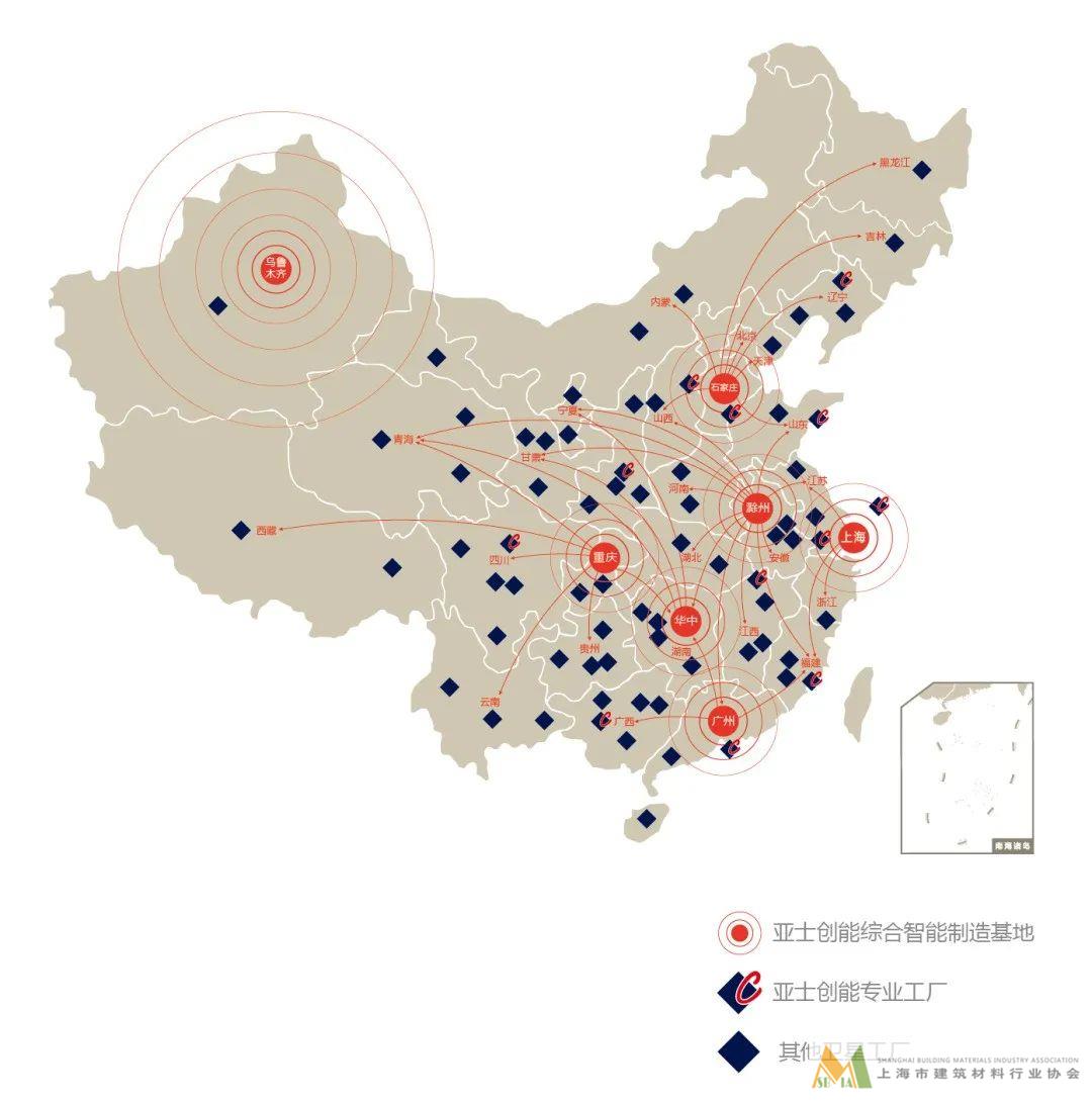 集團在全國構(gòu)建起“1+6+N”三個層級的產(chǎn)能供應(yīng)保障體系。第一層級指1個上??偛俊?個上海工廠加6大制造基地;第二層級指12個專業(yè)工廠;第三層級指亞士生態(tài)圈中的全國數(shù)十個其他衛(wèi)星工廠。三個層級的全國產(chǎn)能布局,形成涂料、成品板500公里,保溫板300公里,干粉砂漿200公里的就地就近立體化供應(yīng)鏈。