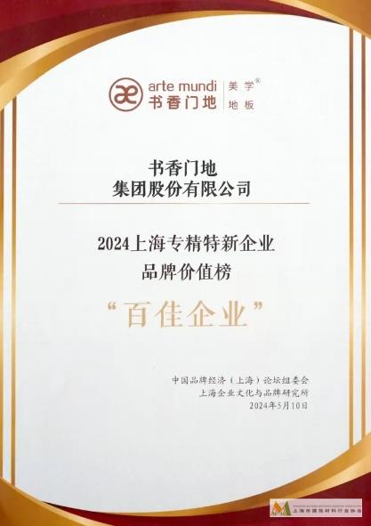 書香門地集團入選“2024上海市專精特新企業(yè)品牌價值榜(百佳企業(yè))”